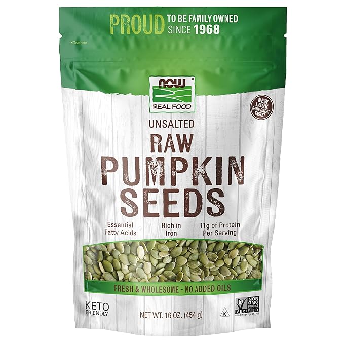 NOW Foods, Pumpkin Seeds, Raw and Unsalted, Essential Fatty Acids, Rich in Iron, Excellent Source of Protein, Certified Non-GMO, 1-Pound (Packaging May Vary)